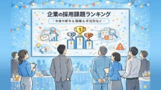 中途や新卒、職種別、手法別に企業が抱えやすい採用課題をランキング形式で整理し、自社が直面している問題の所在を客観的に把握できるよう構成しています!改善策の押し付けではなく、判断の軸となる視点や考え方を優先し、採用活動全体の見直しに役立つ内容をまとめたガイドです。