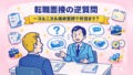 就活の二次面接で頻出する質問を分類し、思考の一貫性や実務的な視点を整理する様子を表したイメージイラスト