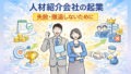 人材紹介・有料職業紹介事業の業務フロー全体と、流れの中で発生しやすい課題・問題点を整理したアイキャッチイメージイラスト